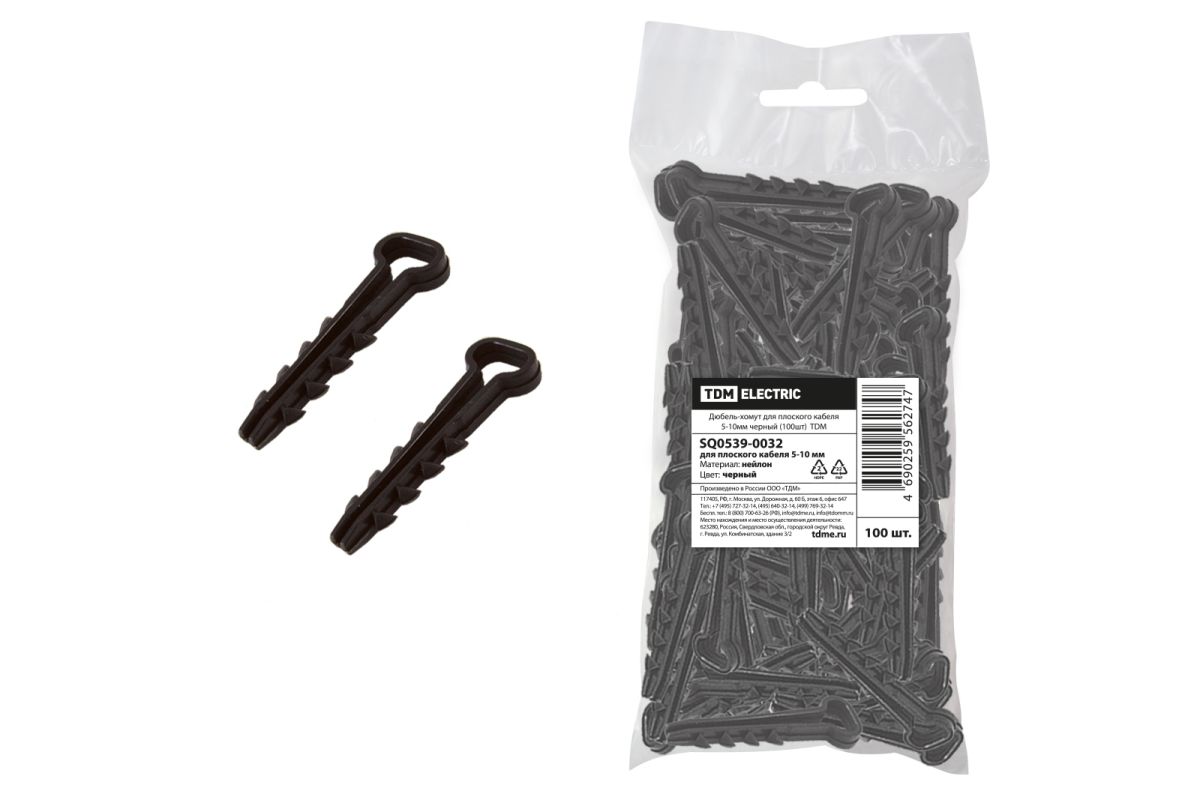Читать все статьиДюбель-хомут для плоского кабеля 6-14мм черный(100шт), ТДМ