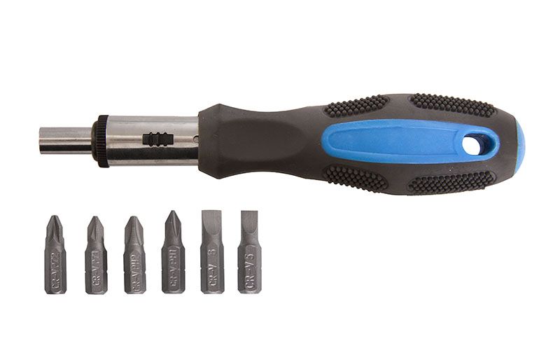 Читать все статьиОтвертка реверсная +6 насадок двухкомп,ручка