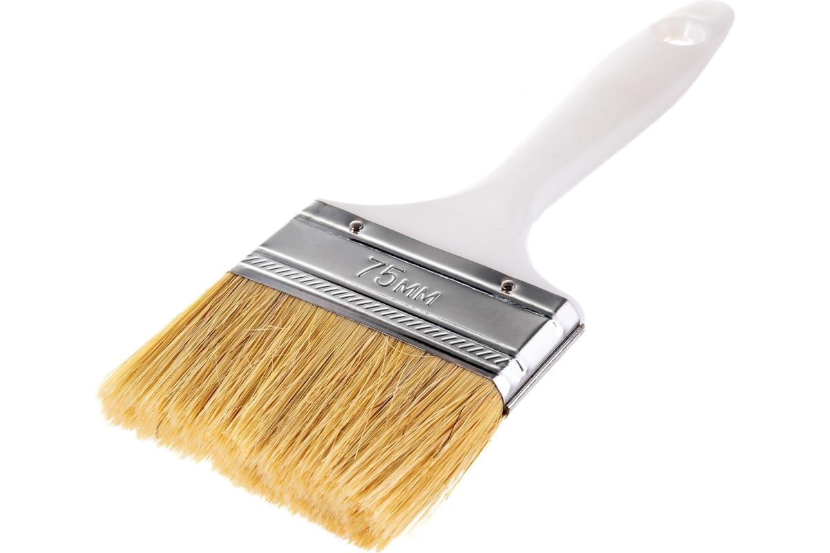 Плоская кисть KORVUS Хобби 75 мм, смешанная щетина 0102030 имеет классическое исполнение и подойдет для окрашивания наружных и внутренних поверхностей. Удобная профилированная рукоятка обеспечивает надежное удержание инструмента. Также она защищена от влаги. Бандаж соединяет между собой рукоять и щетину, исключая выпадение волокон, что продлевает срок службы инструмента.
