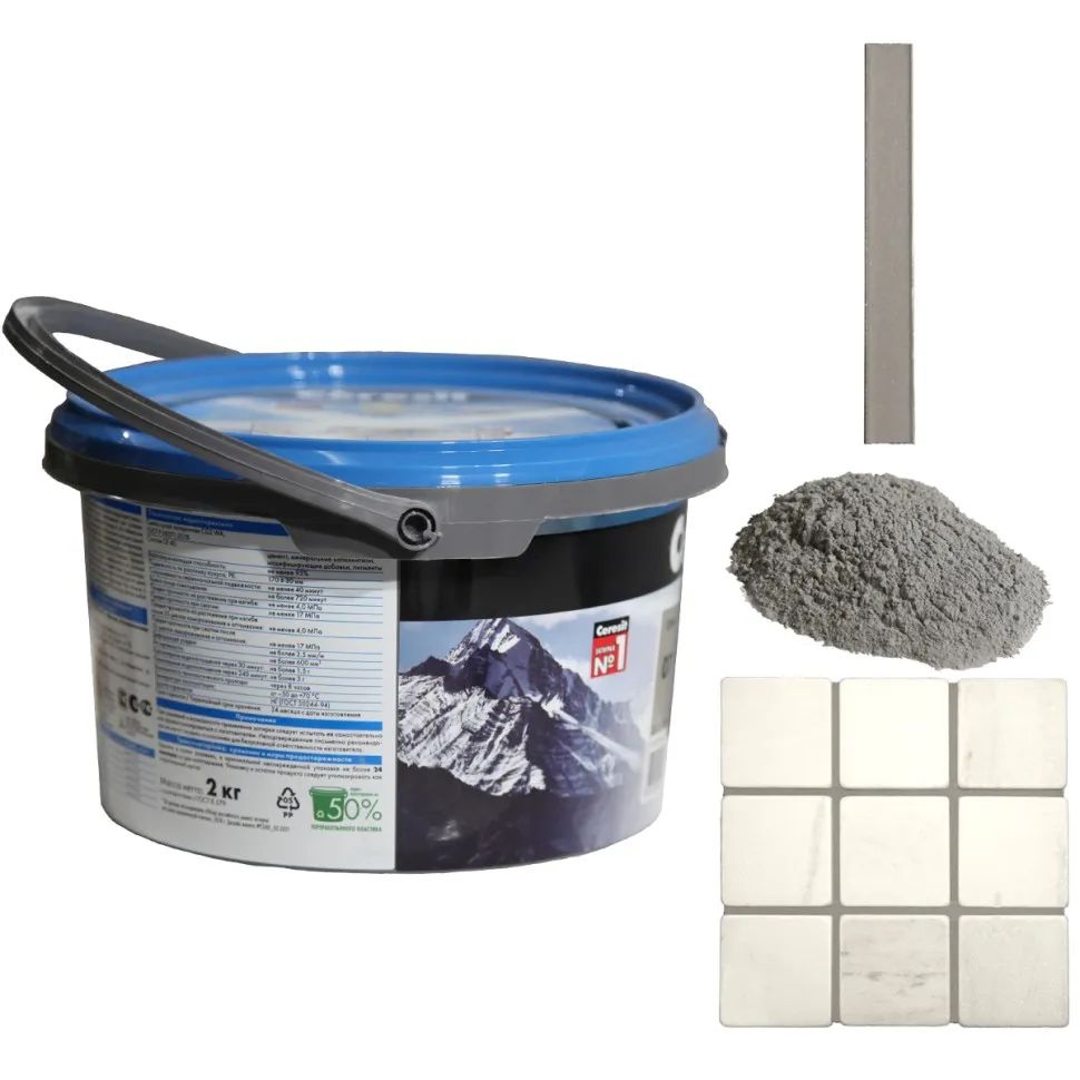 Цвет затирки Церезит СЕ40 07 - Серый - традиционный серый, ближе к цвету цемента. Фасовка 2 кг предназначена для выполнения типовых плиточных работ.
